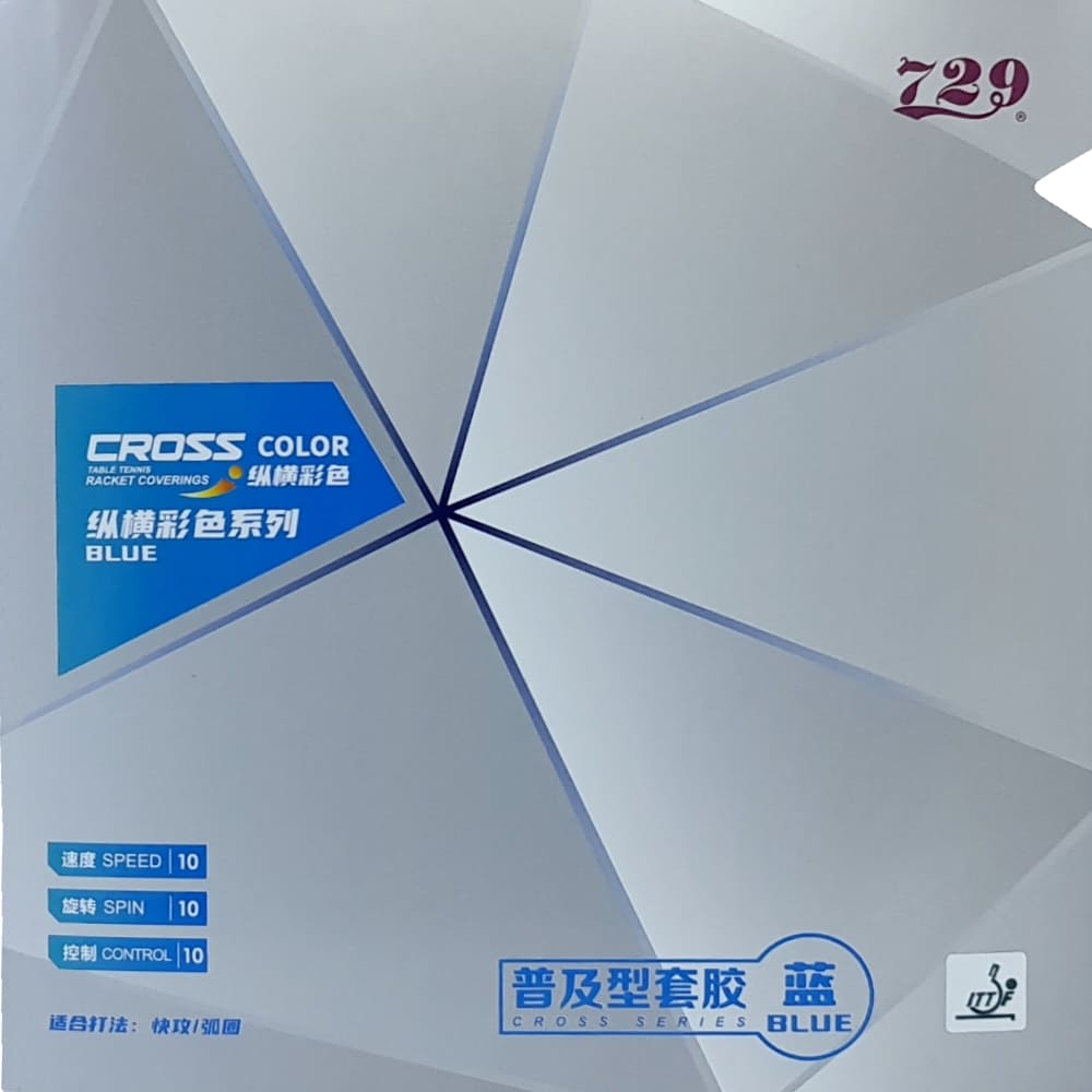 729 Cross General (blue rubber) – це та ж сама накладка 729 Cross General, тільки з топшитом синього кольору. Універсальна накладка стилю allround. Відмінне співвідношення ціна/якість. Підрізування, накати та контрольна гра є сильними сторонами та відмінною рисою даної накладки. Добре себе показала як на дерев’яних, так і на карбонових основах.