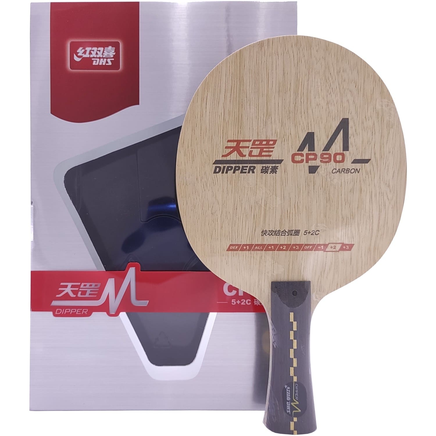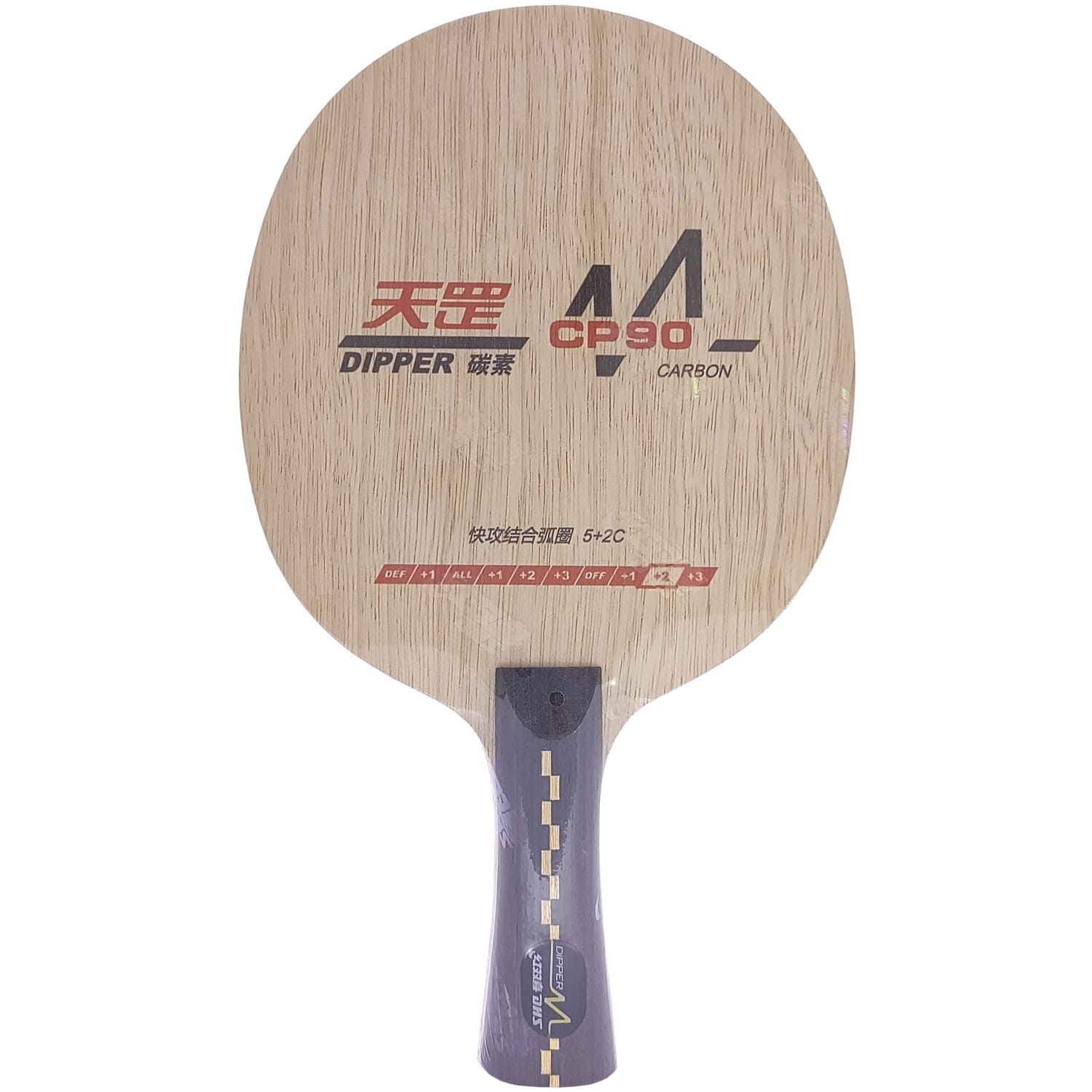 Основа для ракетки DHS Dipper DM CP90 – комбіноване семишарова основа з дерева та карбону типу OFF ++. Таке поєднання забезпечує хорошу швидкість та контроль. Відмінно підійде для любителів швидких атак з середньої та дальньої дистанцій. Модель зручно лежить в руці завдяки ергономічній FL рукоятці, що сприяє комфортній грі. Важить 87 грам; товщина – 5,9 мм.